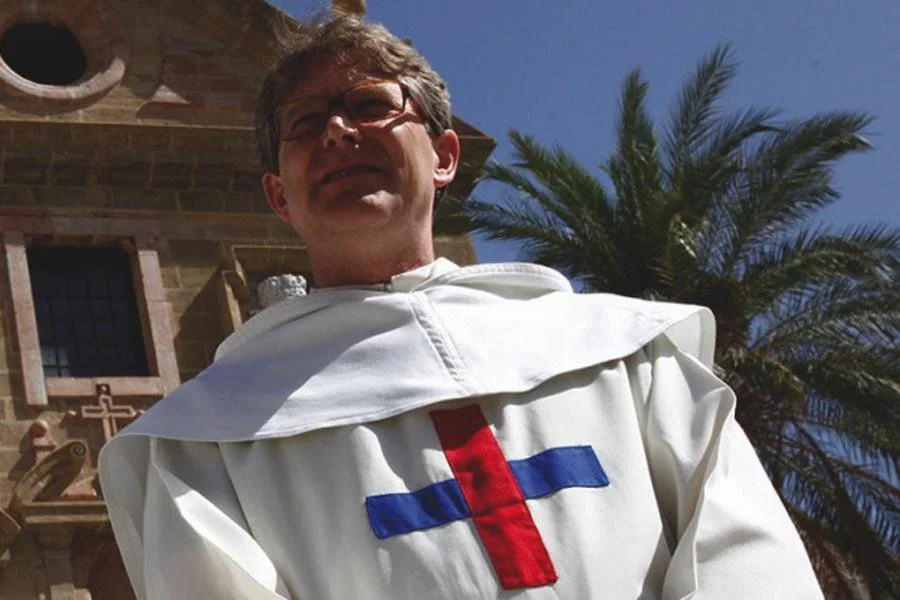 ¿Pero que hace un alemán trinitario en España? ¿Cómo llegó hasta aquí? Su historia vocacional nos impactó a todos sus compañeros. Era un joven que trabajaba en una próspera empresa de marketing en Frankfurt. Un joven de una extensa familia noble del sur de Alemania (de hecho tiene más nombres y apellidos de los que escribe) de tradición cristiana, criado con todo y con mucha exigencia. Un joven que había viajado y experimentado mucho. Un joven con trabajo, vivienda, dinero, amigos, amigas… y sin embargo aún le faltaba algo para dar sentido a su vida. Me encantaba cuando contaba como al pasar por una Iglesia de Frankfurt vio el Signum Ordinis y se quedó totalmente impactado por lo que le sugería aquella imagen de Jesús salvando a un blanco y a un negro, a personas, culturas distintas. Cada vez que pasaba por la puerta se quedaba pensando, hasta que decidió entrar en aquella parroquia por el significado de aquel mosaico. Allí conoció a la comunidad de Trinitarios que atendía a los migrantes españoles y el carisma. Se apasionó por el mensaje tan revolucionario del Signum Ordinis. He de reconocer que ese testimonio también me ayudó a valorar y profundizar más sobre este poderoso signo que nos dejó el propio San Juan de Mata.